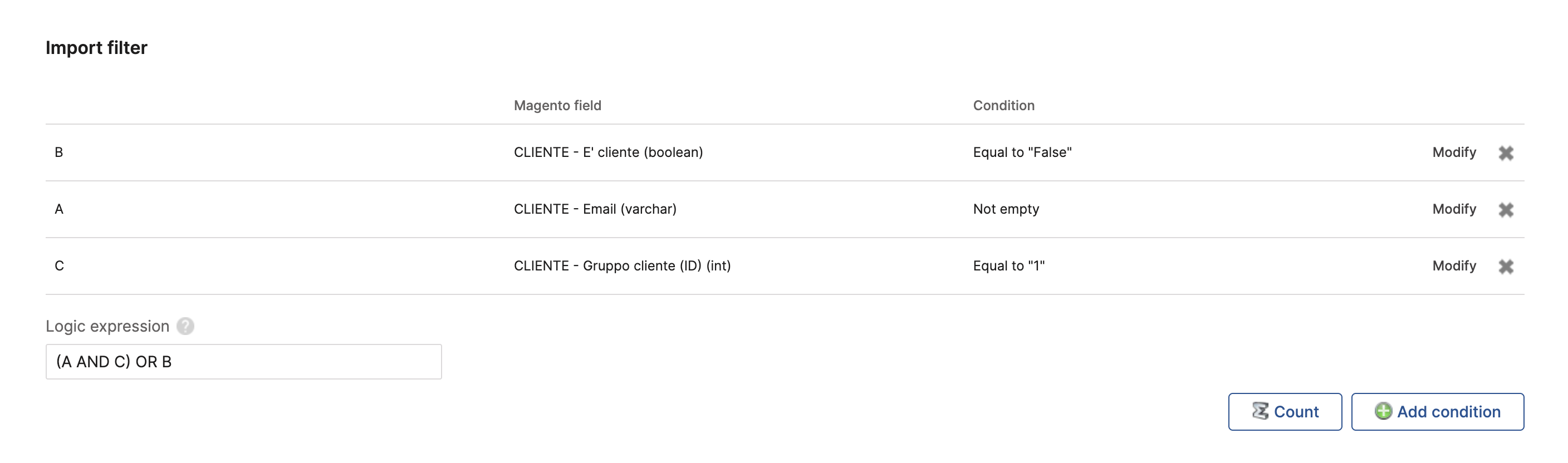 This option allows you to synchronize only a subset of contacts, for example if you want to import only newsletter subscribers, customers from a specific store view, etc.