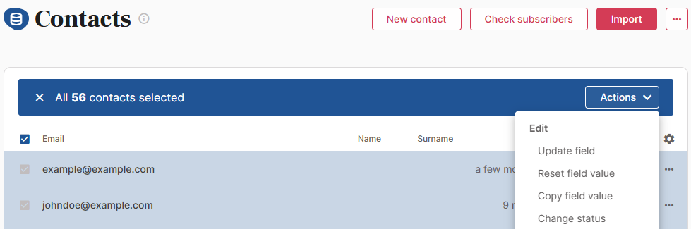- Select the option to change the status to “Update and resubscribe contacts”;