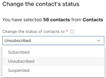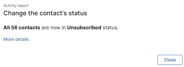 On the next screen, for the field Change the status of contacts to, select Unsubscribed:
