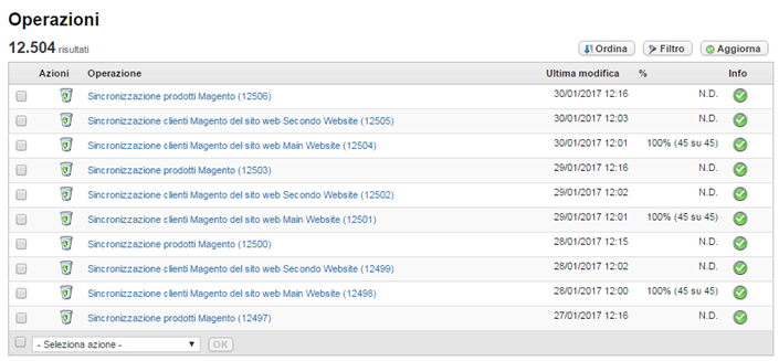 - The Next Execution column indicates, if the operation is scheduled, the date and time of the next execution.