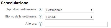The calculation is launched on the day and time indicated in the Day of the week: and At Hours: fields.