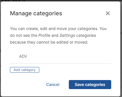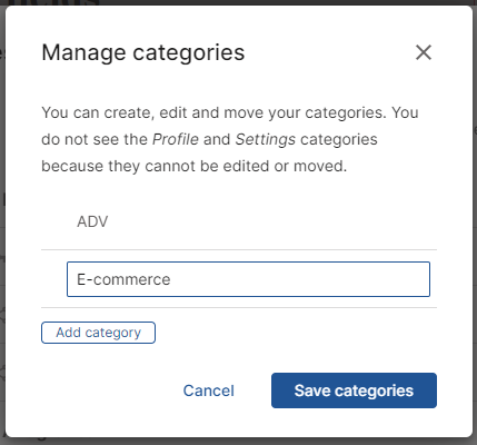 Type the name of the new category, or you can delete or edit an existing one, finally click the Save categories button.
