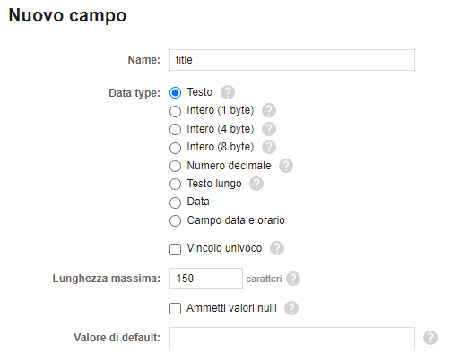| description | Text | Can be very long; in these cases, we suggest using Long Text |