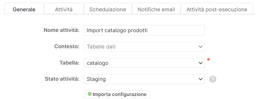 The automatic and periodic import of the product catalog is done by creating a scheduled task.