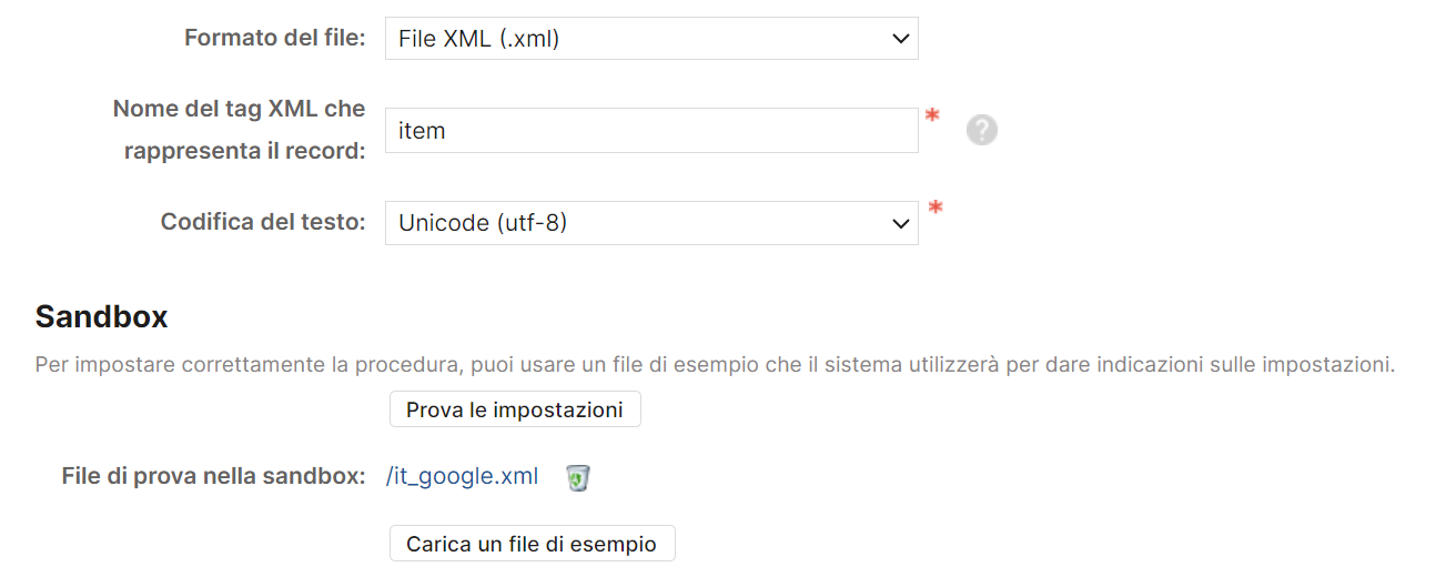 Indicate the file format as XML File, specify the XML product tag (usually "item") and the text encoding (Unicode). Also, test the configuration after saving it.