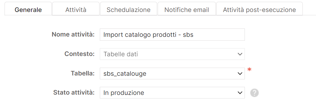 - Create a New Task with a descriptive name, like "Import Product Catalog," choose Data Tables as the context, and select the newly created catalog table.