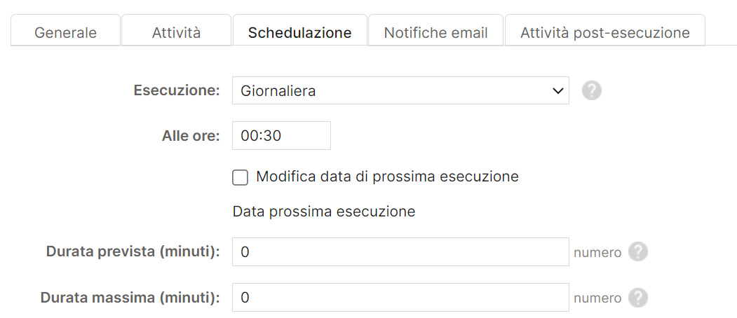 Once settings are verified as correct, you can schedule the periodic execution of the task: