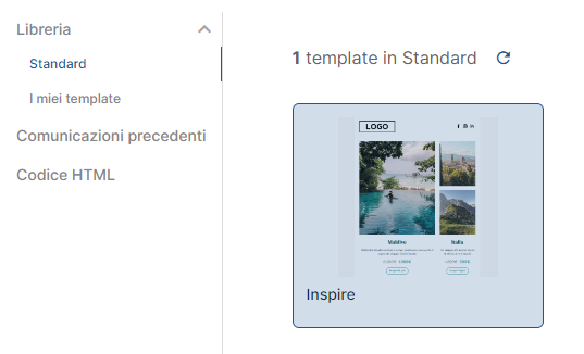 When creating a new communication, choose the Inspire template from the standard library or a custom template derived from Inspire.