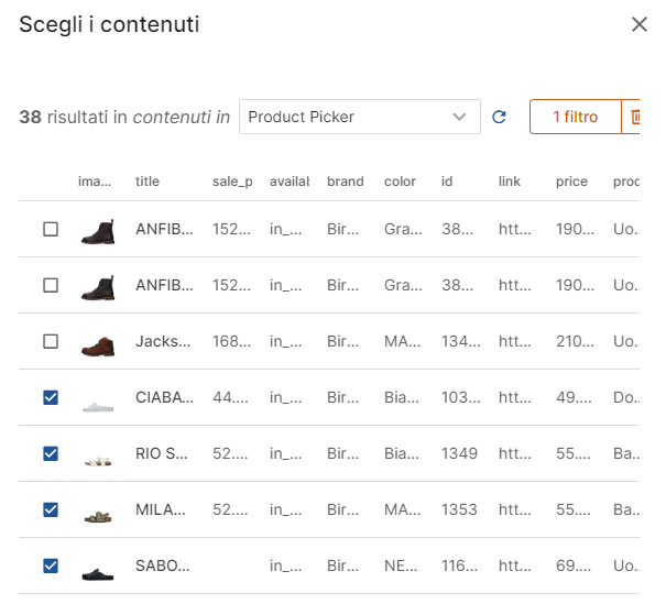 The fundamental prerequisite to configure your Product Picker is to have a data table on MagNews, updated and synchronized, containing all the relevant information of your product catalog.