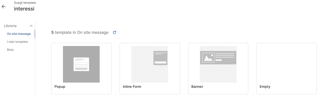 To access it, click the Create on-site message button. You will then see the list of Basic Templates.