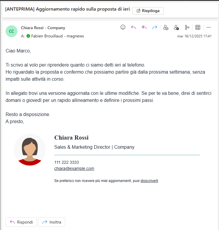 More realistic and natural B2B emails: you can now left-align the entire message body to create communications similar to those sent from your email client.