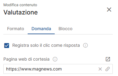 Rating: ability to collect feedback without a supporting survey page. You must enable the option on the rating block and specify a landing page where the contact will be redirected after clicking. Responses are visible in statistics.