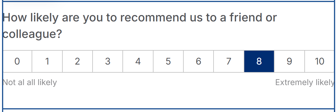With a click, the recipient can express their satisfaction/rating on a certain topic; for instance, "Rate the event overall."