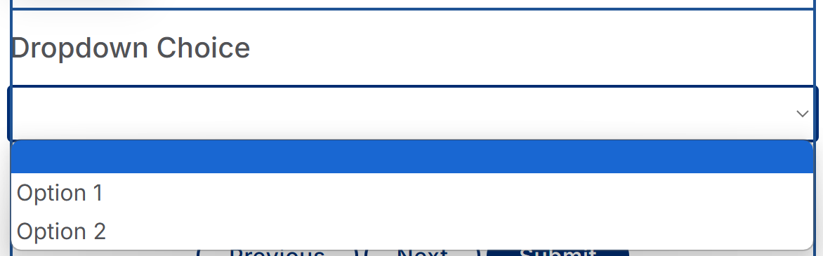 The recipient can select only one option among those set; graphically, only one option is displayed. It is used when there are many response options, for instance, for countries, states, etc.