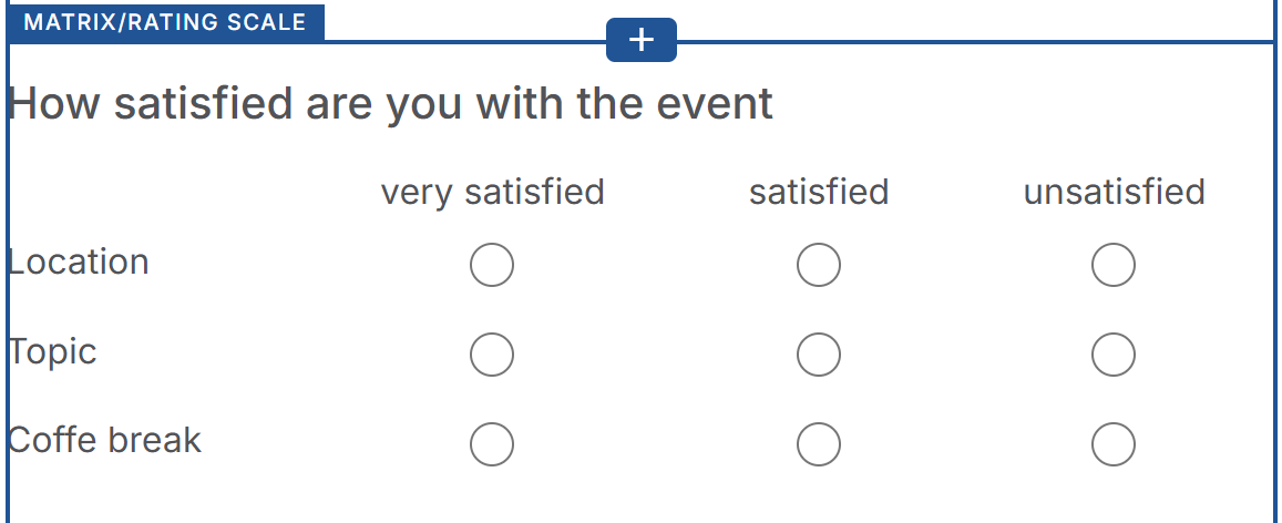 The recipient can select one or more options for each row; it is used when you want more specific responses to a general question, for instance, "Event satisfaction."