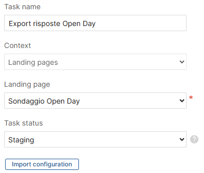 If instead you need to configure the landing page responses export task from scratch, continue with the following sections of this article.