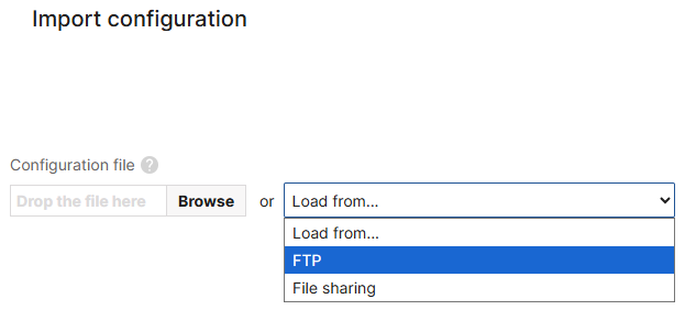 If you already have a file layout generated with the Export configuration function available in another scheduled task configuration, click Import configuration. You will access a guided flow where you can select that file by drag-and-drop or upload from the local FTP of your magnews account or from the File exchange section in magnews.