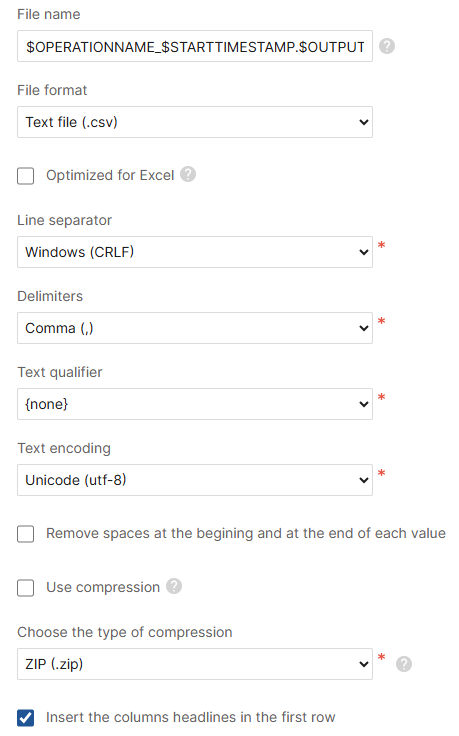- Define the number for each column so they are ordered in the exported file (e.g., column "1" will be the first)