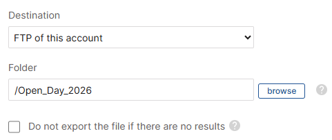 Specifically, for this type of scheduled task, select the Landing page for which you want to automatically export the responses received (e.g., Open Day survey):