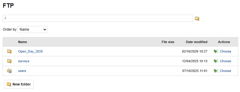 If you choose FTP of this account, select the internal FTP folder for the account: