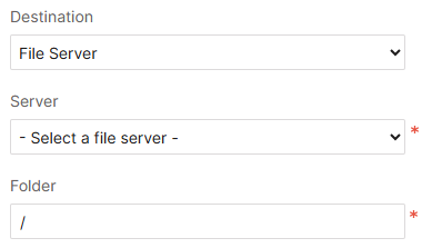 If you choose File server instead, select the remote server and the folder in it where to save the files: