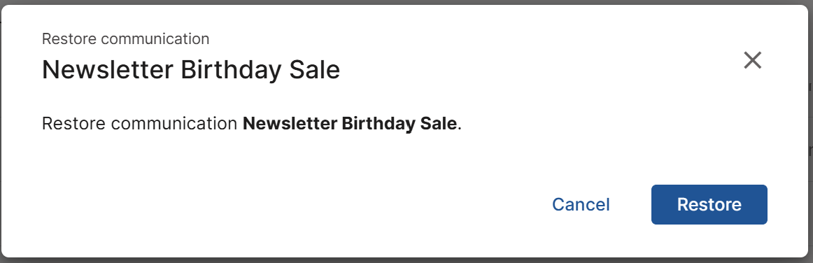 When you delete a communication or a transactional, it is not immediately removed, but remains in the trash for 30 days, so you can restore it at any time before it is permanently deleted.