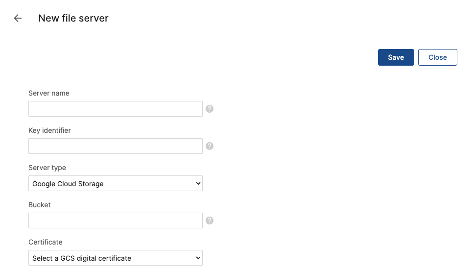 Google Cloud Storage is not a traditional FTP server. For this reason, in magnews it is configured as an external file server, but with specific fields different from FTP or SFTP.