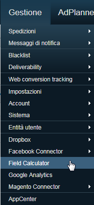 Nel menu a tendina corrispondente è presente l'elenco di tutti i campi esistenti in tutti i database.