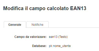 database di appartenenza del campo da valorizzare. Se il campo è condiviso, sarà indicato il Master Database.