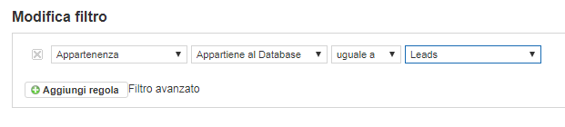Nella sezione Restringi target seleziona il database i cui contatti saranno interessati dal calcolo applicando una condizione specifica.