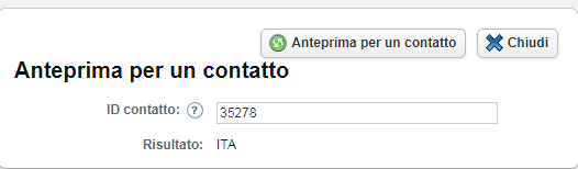 Nella finestra che compare, inserisci l'id di un contatto appartenente al database definito nella sezione Restringi target e clicca nuovamente sul pulsante Anteprima per un contatto.