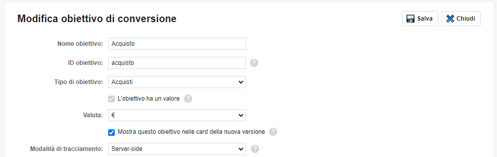 Crea il nuovo obiettivo "Acquisto"