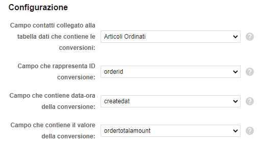 - Valore della conversione: ordertotalamount oppure ordertotaldiscountamount