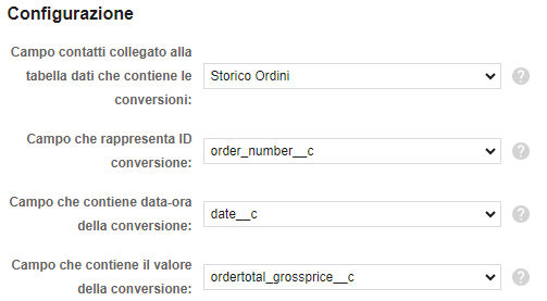 - Valore della conversione: ordertotal_grossprice__c
