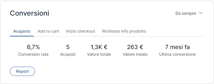 Puoi approfondire qui per maggiori dettagli sui Report degli obiettivi di conversione.