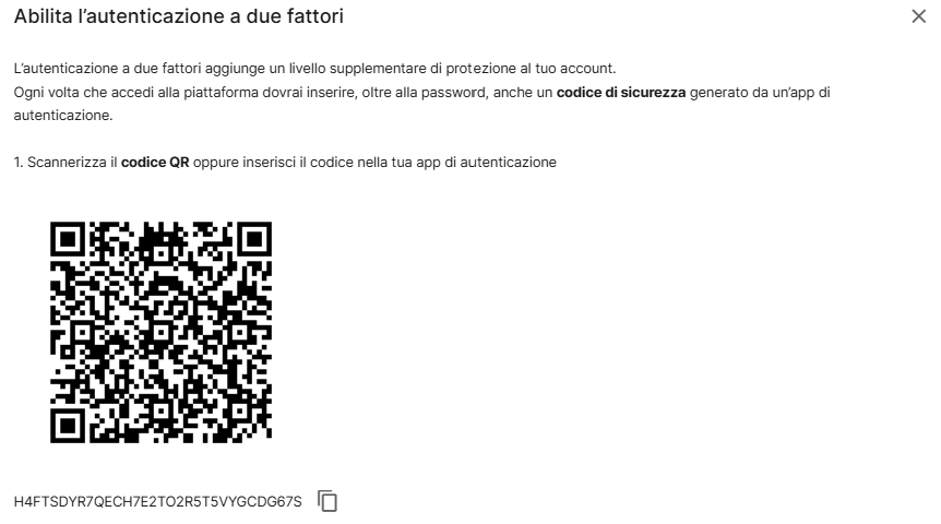 Apri la tua app di autenticazione, scannerizza il QR code o riporta il codice fornito da magnews