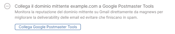 Se non hai ancora collegato magnews al Google Postmaster Tools, ti verrà suggerito di farlo.