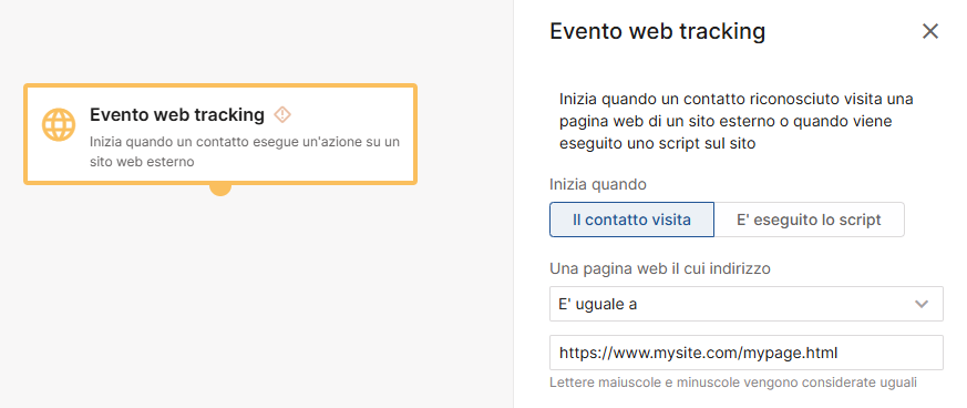 Alcune delle azioni rilevate dal web tracking possono essere utilizzate per avviare dei flussi di marketing automation.