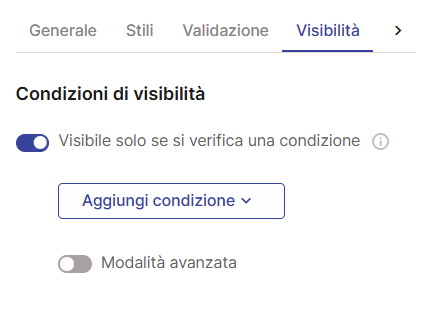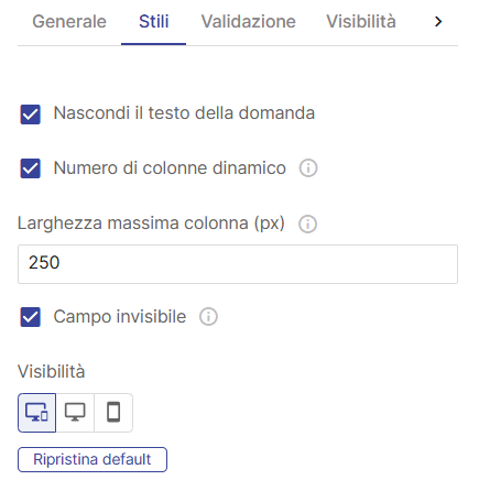 permette di modificare la visibilità del campo tra Tutti i dispositivi (default), Desktop o Mobile.