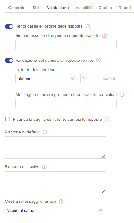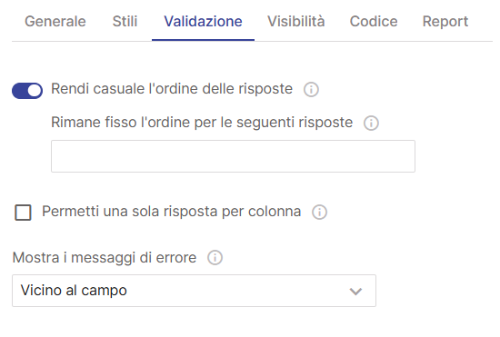 se l'opzione è attiva, per ogni utente le opzioni di risposta saranno visualizzate in ordine casuale;-