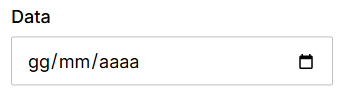 Il campo data permette di inserire una data. Oltre alla configurazione dei campi descritti precedentemente dovrai configurare: