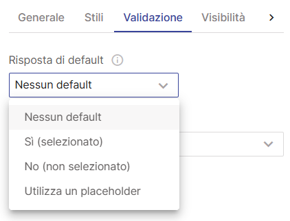In questo caso, come default, sarà caricato il valore che indichi nell'opzione precedente (Risposta di default). -