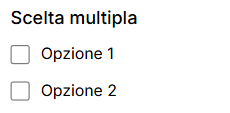 | Scelta multipla | Consente di scegliere una o più opzioni tra quelle proposte. | |