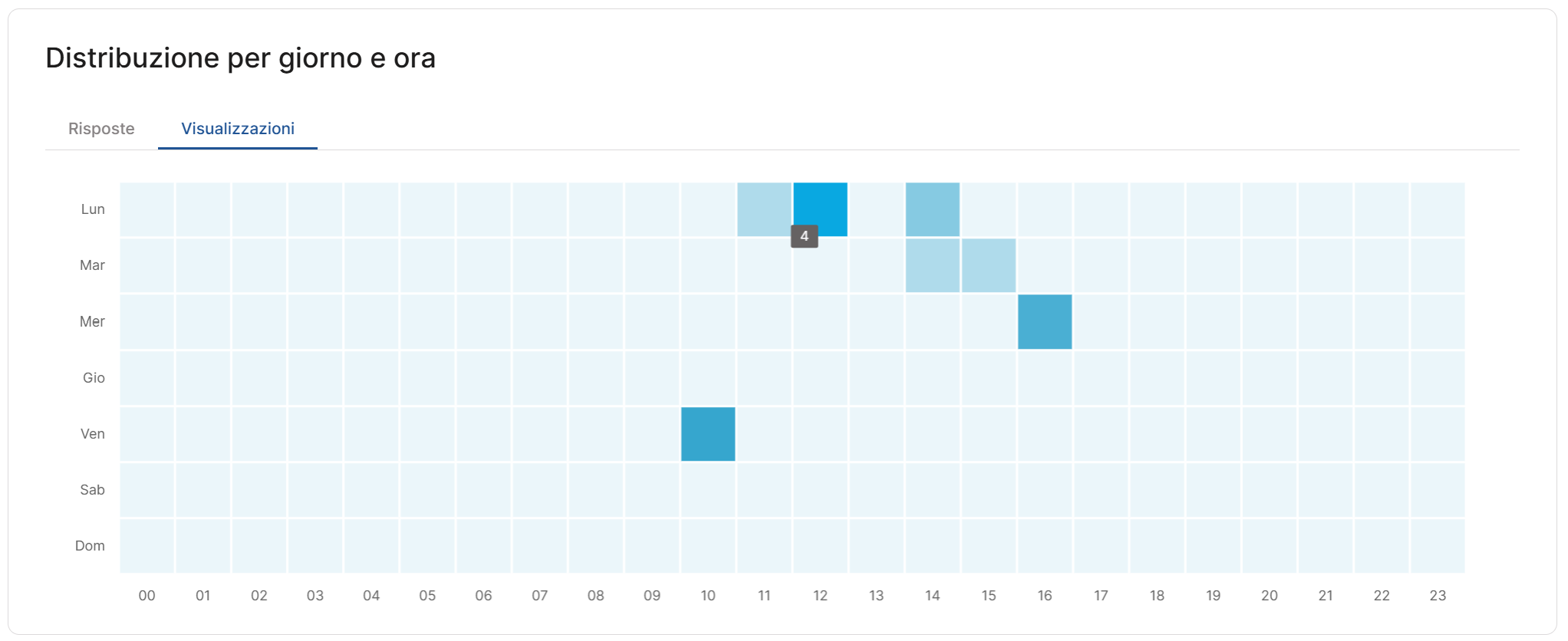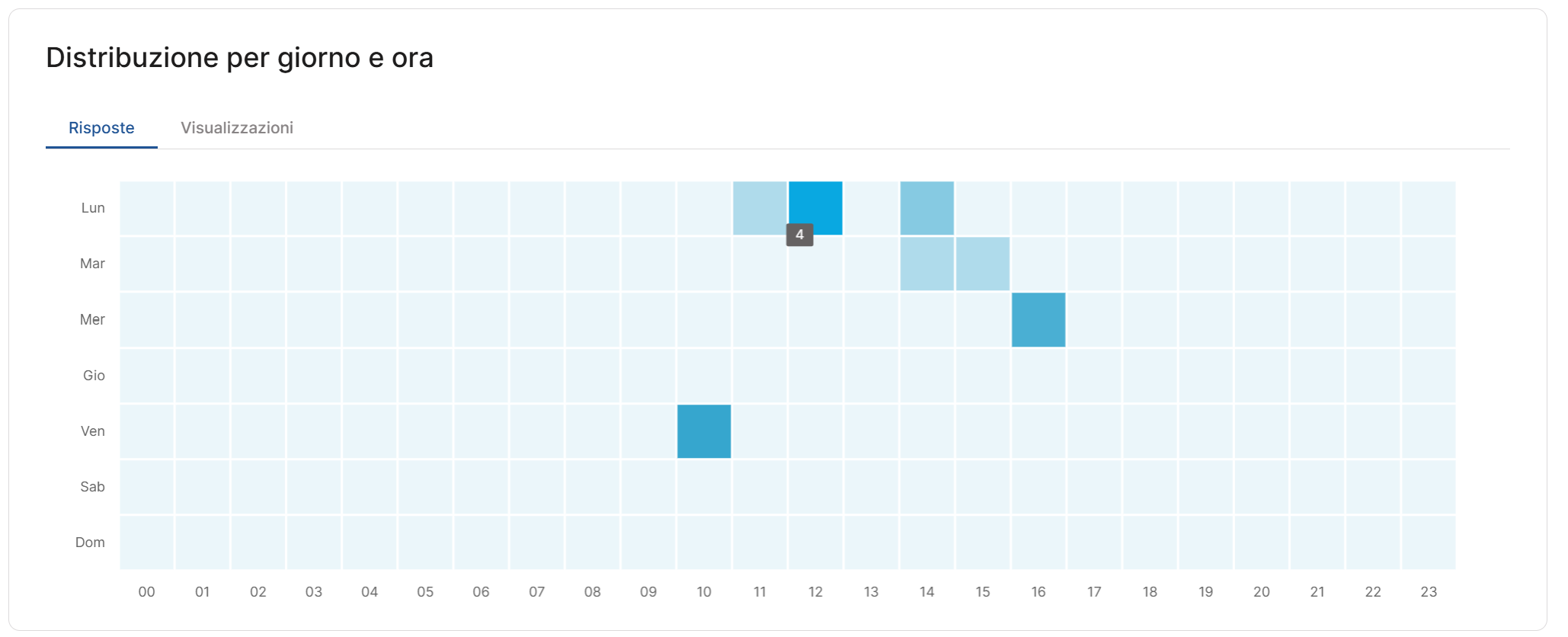 Confrontare risposte e visualizzazioni ti permette di capire se ci sono fasce orarie in cui la pagina cattura l’attenzione ma non converte: un segnale utile per ottimizzare testi, contenuti e call to action.