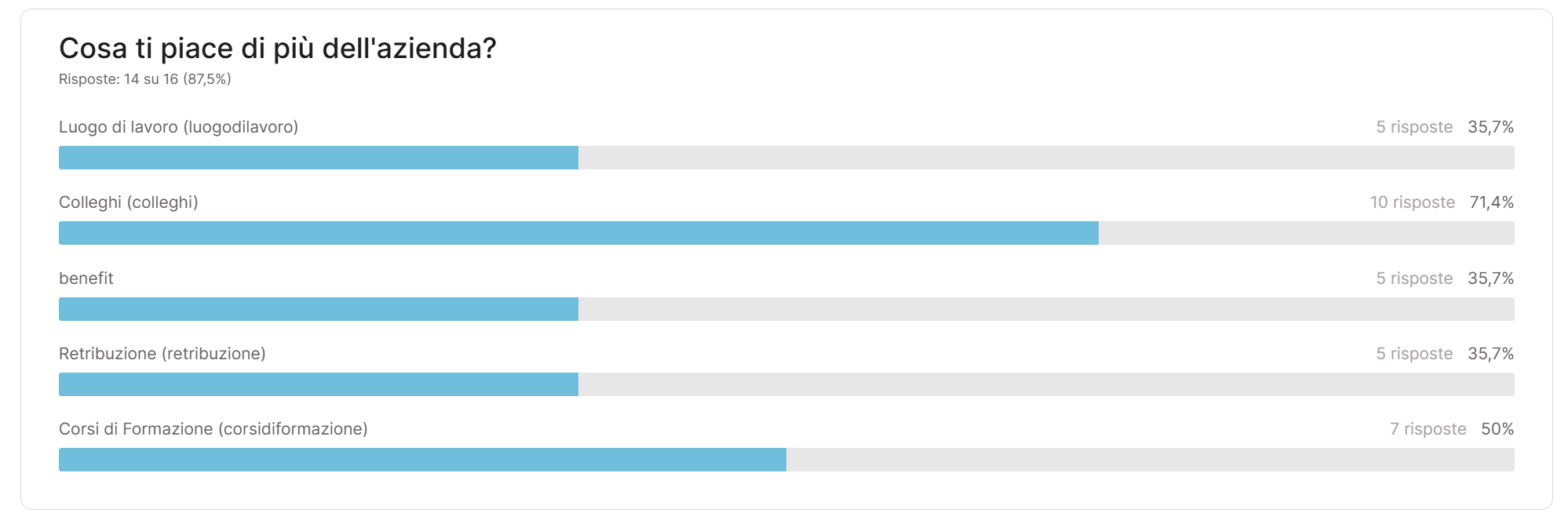Questo report ti permette di capire rapidamente quali aspetti o contenuti hanno riscosso più interesse e quali invece hanno generato minore coinvolgimento. È il modo più semplice per cogliere trend e pattern ricorrenti.