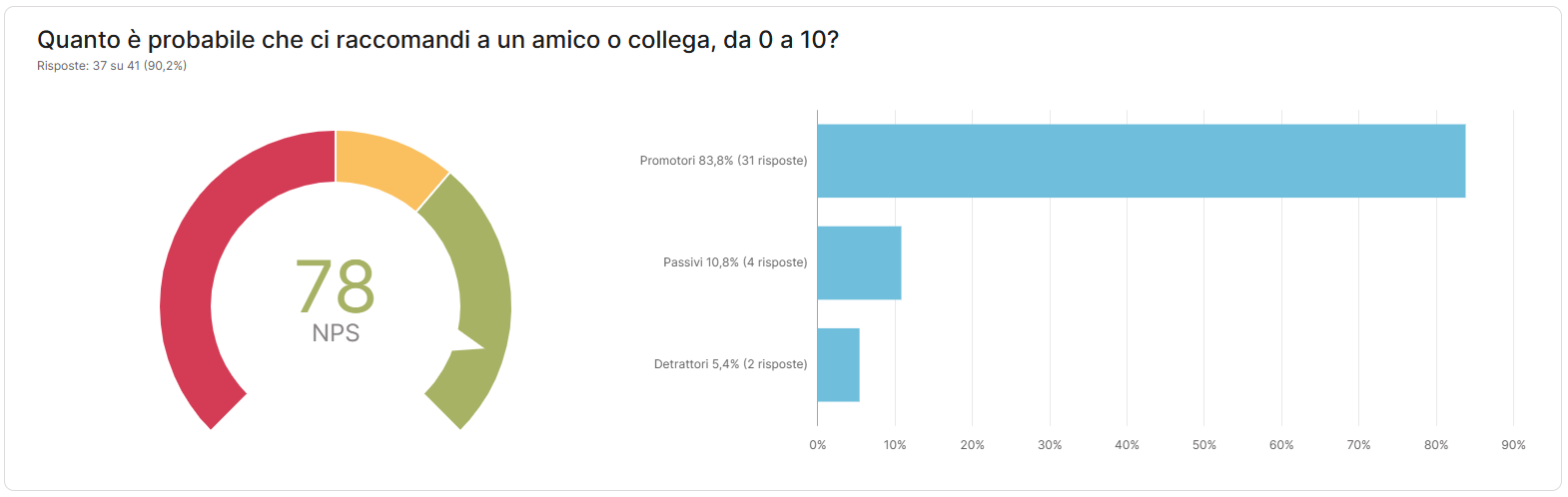 Queste viste si attivano solo quando il form include quel tipo di domanda e ti aiutano a leggere i dati in modo più chiaro e immediato. Se vuoi entrare ancora più nel dettaglio, dai un’occhiata alle pagine dedicate all’NPS e alla Classifica.