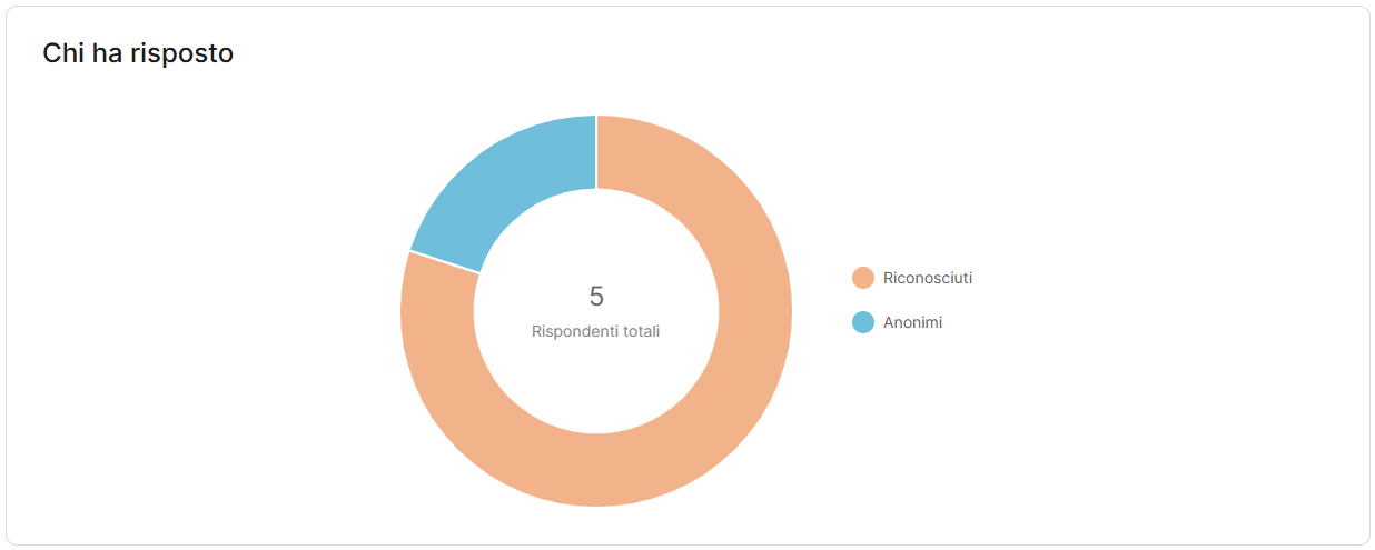 Infine, sempre per le landing page che consumano crediti survey, è disponibile il grafico sulla distribuzione dei partecipanti tra contatti riconosciuti e anonimi, visibile solo quando sono hanno risposto entrambe le categorie di contatti. Questo report ti aiuta a valutare a colpo d’occhio il peso dei contatti noti rispetto al totale delle risposte raccolte.