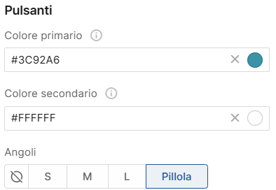 - Stili generali: possibilità dei definire i colori dei pulsanti a livello comunicazione e di personalizzare i singoli pulsanti.