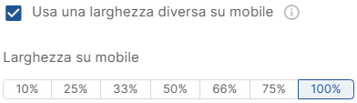 Immagine: puoi impostare la larghezza dell’immagine su mobile, in questo modo evita l’uso di doppie immagini desktop/mobile e riduce il peso del codice.