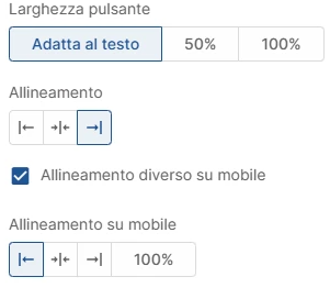 Pulsante: puoi modificare l'allineamento del pulsante su mobile